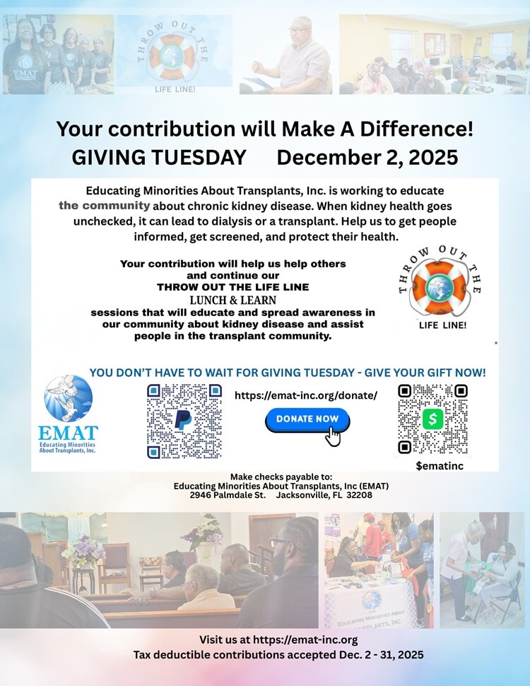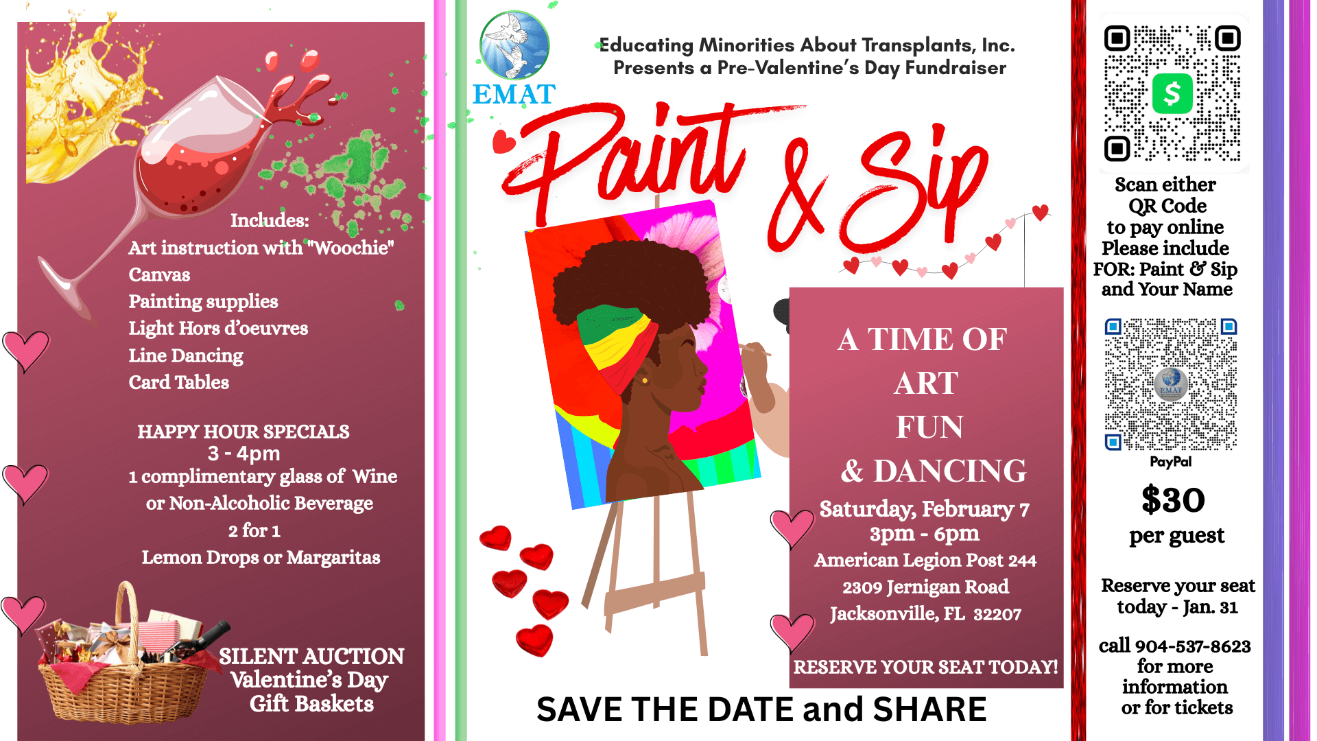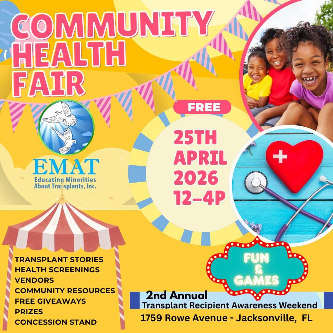 Please support our registration drive by joining the Donate Life registry and when you near the end of the form How did you learn about Florida’s donor registry? please select “Other” Please specify- select Educating Minorities About Transplants, Thank You!